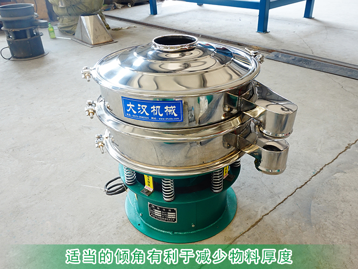 不銹鋼振動篩在設(shè)計傾角時通常情況下為45°,在實(shí)際使用過程中如果物料中雜質(zhì)少只需粗篩一下就行的時候可以適當(dāng)調(diào)節(jié)進(jìn)料口下部的振動彈簧高度,使進(jìn)料口高度升高可以加快物料在篩面的運(yùn)動從而加快過網(wǎng)。適當(dāng)?shù)膬A角有利于減少物料厚度,實(shí)現(xiàn)薄料層篩分,提高篩分產(chǎn)量。