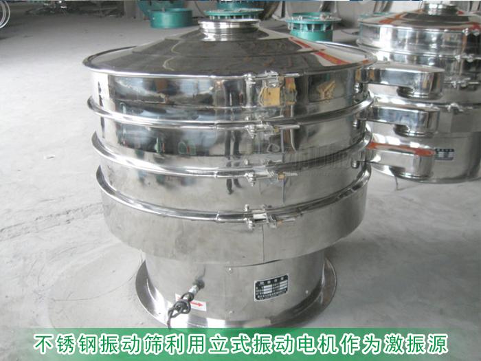 不銹鋼振動(dòng)篩利用立式振動(dòng)電機(jī)作為激振源,電機(jī)上下兩端安裝有扇形的偏心塊,篩分過程中將電機(jī)的旋轉(zhuǎn)運(yùn)動(dòng)轉(zhuǎn)變?yōu)樗?、垂直、傾斜的三次元運(yùn)動(dòng),再把這個(gè)運(yùn)動(dòng)傳遞給上端的篩面進(jìn)行玉米粉篩分,可有效分級除雜出各種規(guī)格的玉米粉。