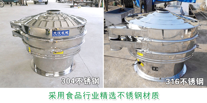 不銹鋼振動(dòng)篩采用優(yōu)質(zhì)304、316不銹鋼材質(zhì),可有效針對屬于食品行業(yè)類的玉米粉,確保篩分過程中的衛(wèi)生型與無污染性, 整個(gè)篩機(jī)結(jié)構(gòu)分為兩種,一種是整機(jī)均采用不銹鋼制成,另一種是與物料接觸不分為不銹鋼材質(zhì),底座為碳鋼材質(zhì),經(jīng)過內(nèi)外拋光后的不銹鋼表面光滑無毛刺現(xiàn)象,完全符合國家對于食品行業(yè)的制定標(biāo)準(zhǔn)。