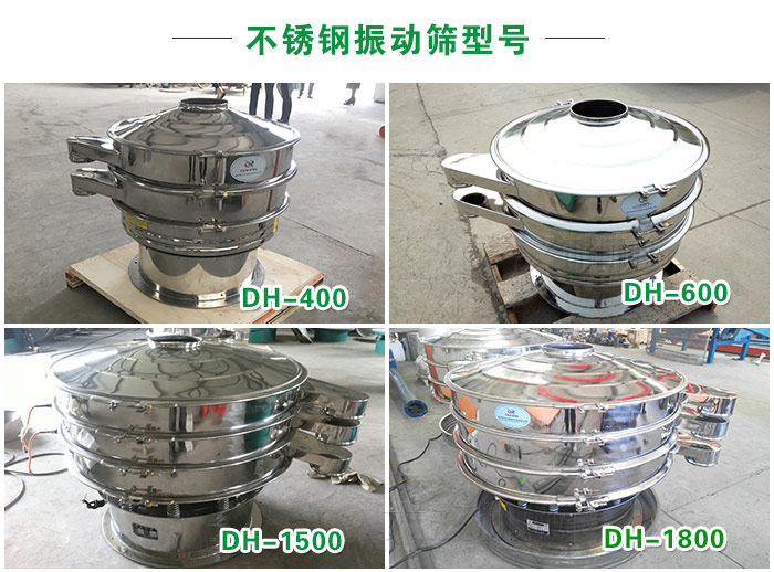 不銹鋼振動(dòng)篩型號齊全,型號有DH400、DH600、DH800、DH1000、DH12000、DH1500、DH18000等,可滿足客戶對于玉米粉產(chǎn)量的不同需求,平均篩分產(chǎn)量為時(shí)篩10噸左右!